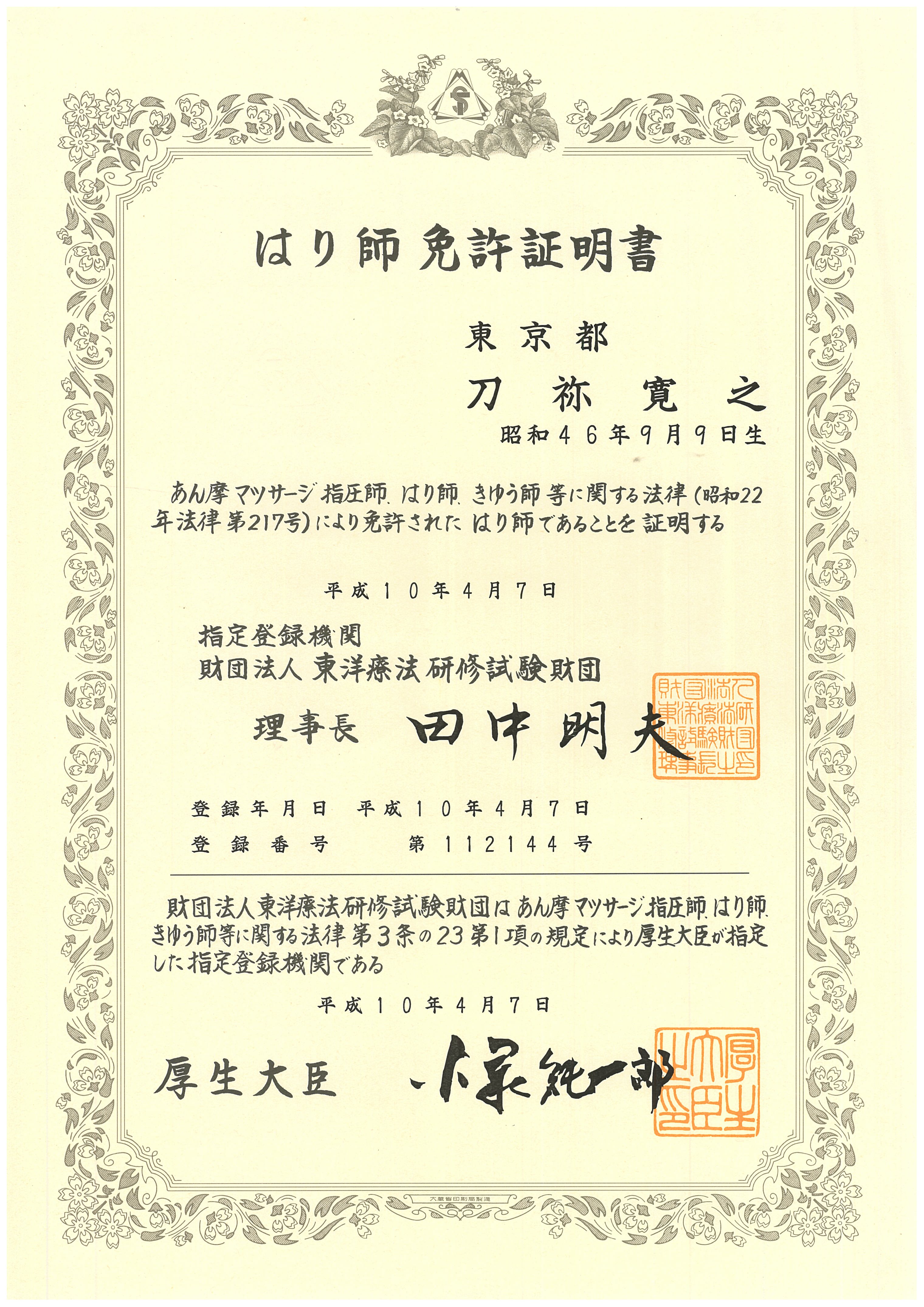 (鍼師・灸師・あんまマッサージ指圧師 取得)