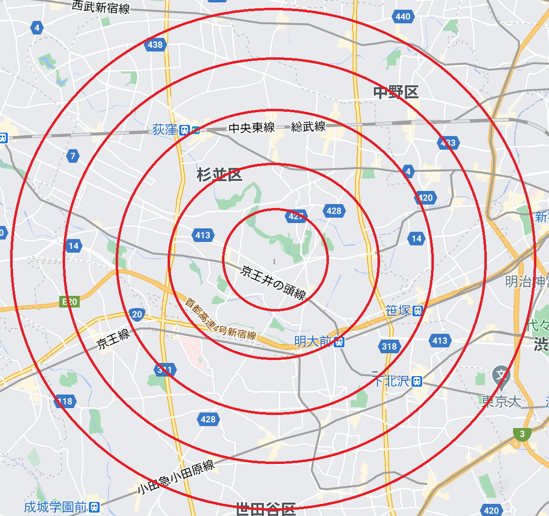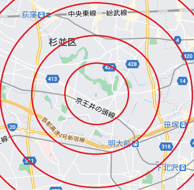 和泉,永福,浜田山,高井戸東,高井戸西,下高井戸,上高井戸,方南,堀ノ内,大宮,松ノ木,成田西,成田東,梅里,高円寺南,阿佐谷南,荻窪,南荻窪,宮前